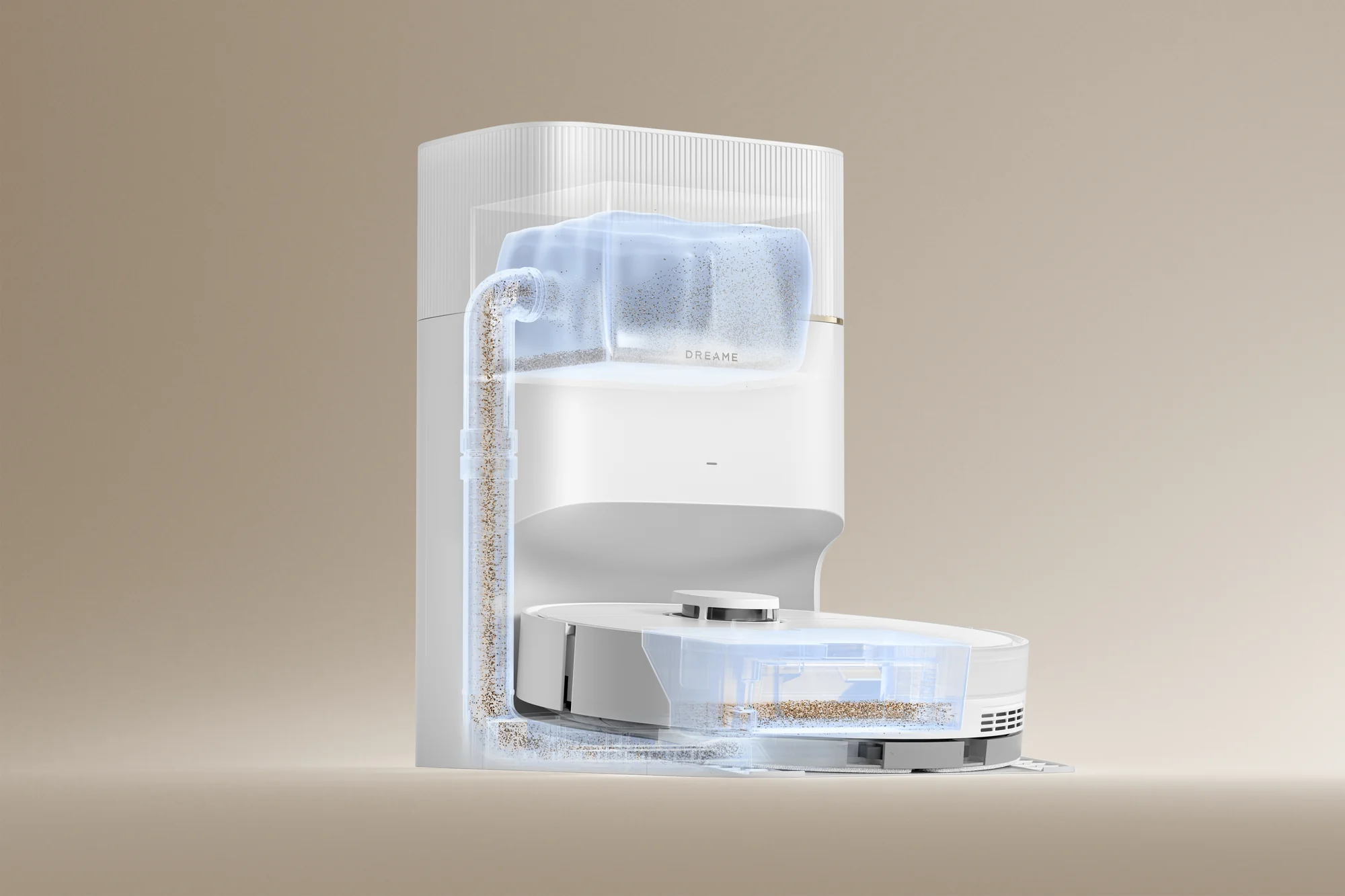 Auto-empty stotis su 5 L dulkių maišu, kuriuo galima naudotis iki 150 dienų* be rankinio valymo.