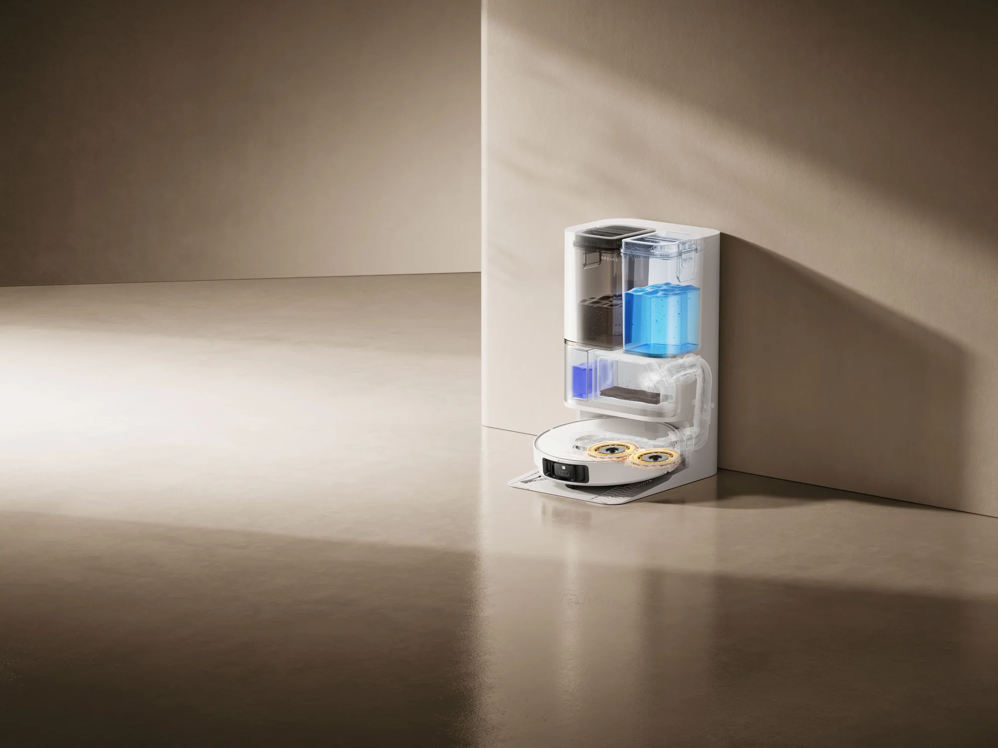 PowerDock™ stotis automatiškai ištuština dulkes, papildo vandens rezervuarą, plauna ir džiovina mopo šluostes – tai reiškia mažiau rankinių priežiūros veiksmų Jums.